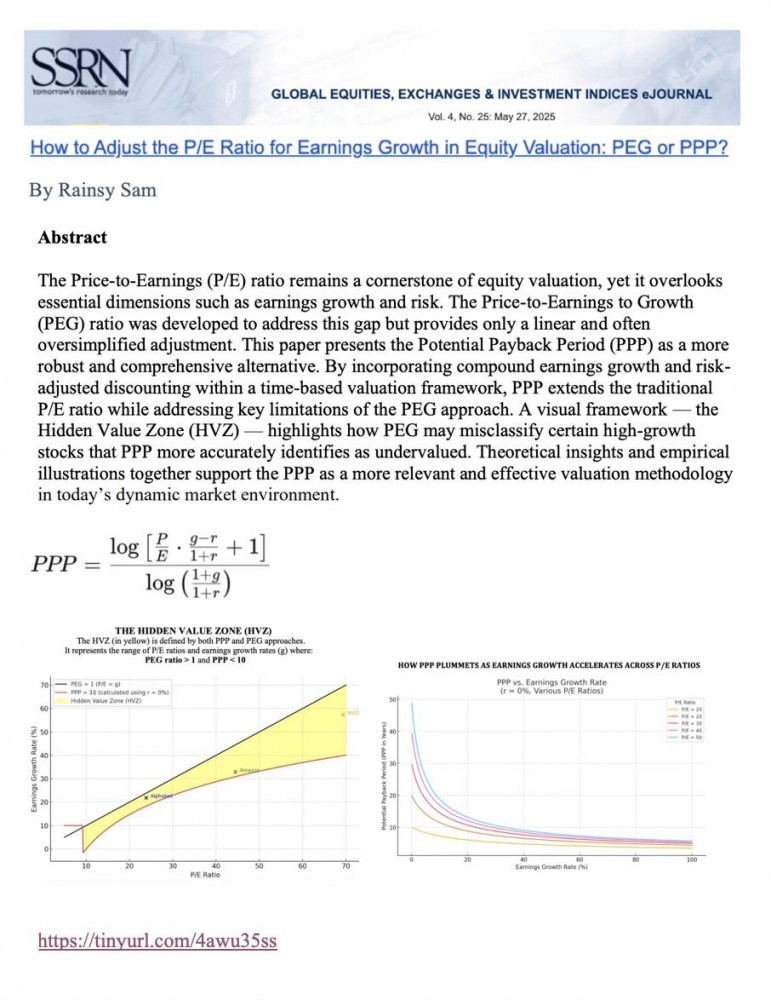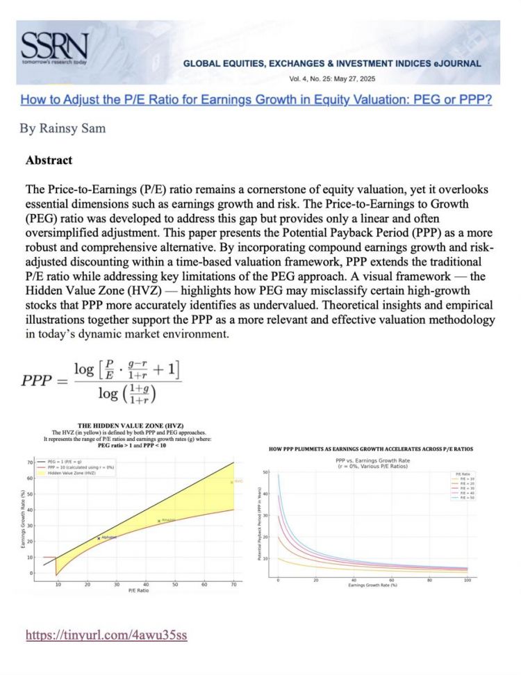 Sam, Rainsy, How to Adjust the P/E Ratio for Earnings Growth in Equity Valuation: PEG or PPP? (May 05, 2025). Available at SSRN:http://dx.doi.org/10.2139/ssrn.5241650