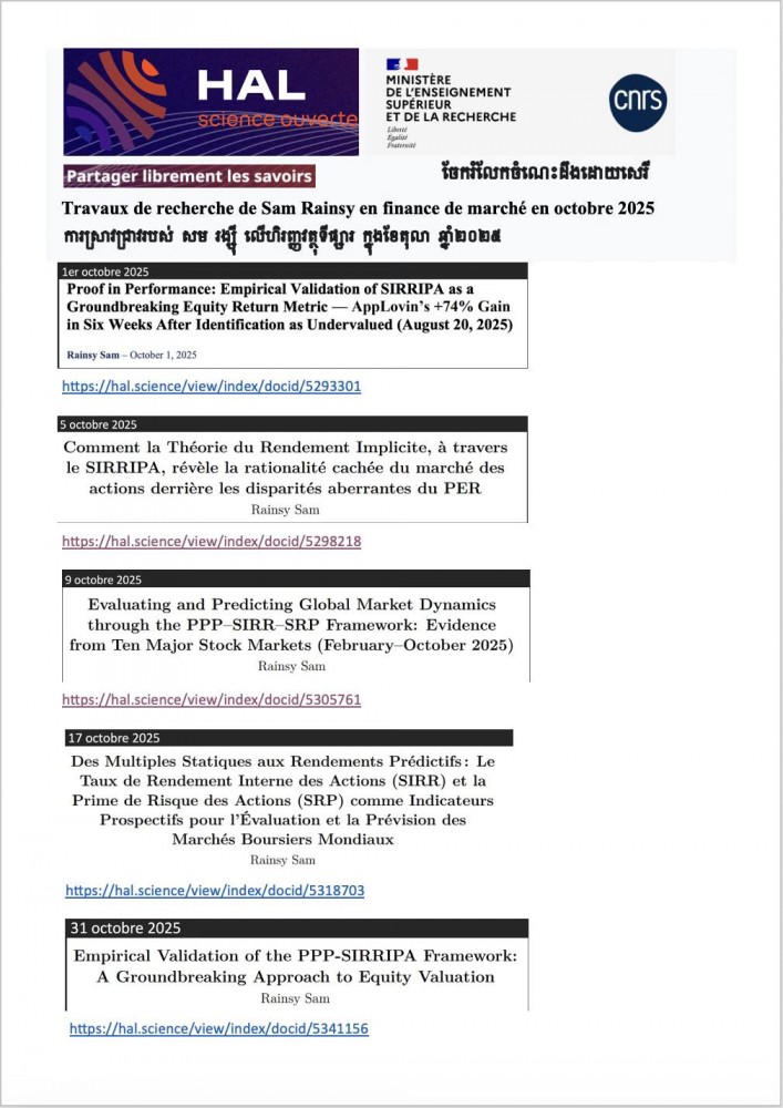 ការស្រាវជ្រាវរបស់ សម រង្ស៊ី លើហិរញ្ញវត្ថុទីផ្សារ ក្នុងខែតុលា ឆ្នាំ២០២៥ / Travaux de recherche de Sam Rainsy en finance de marché en octobre 2025