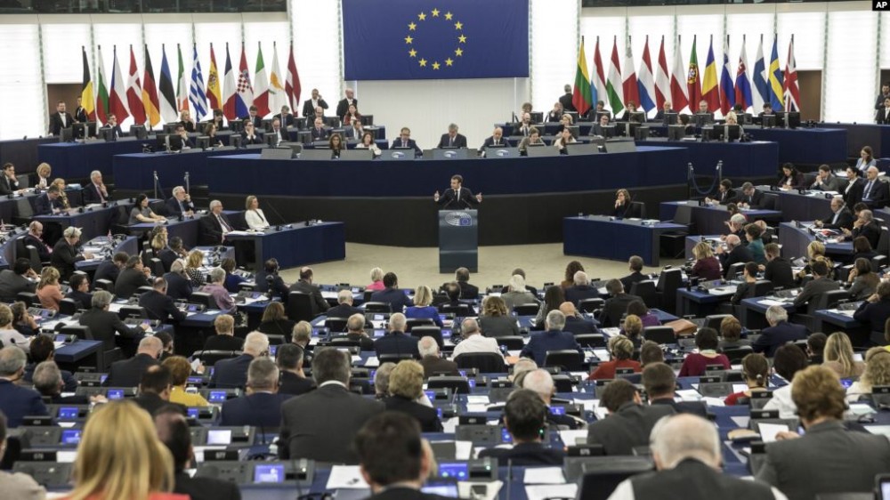 រូបឯកសារ៖ នាយករដ្ឋមន្ត្រីបារាំងថ្លែងទៅកាន់រដ្ឋសភាសហភាពអឺរ៉ុប នៅប្រទេសបារាំង កាលពីថ្ងៃទី១៧ ខែមេសា ឆ្នាំ២០១៨។