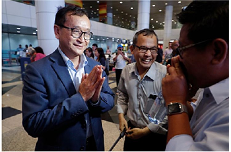 - A few hours before Sam Rainsy's departure from Paris for Thailand as planned for November 7, the Thai Prime Minister, General Prayut Chan-o-cha, personally told the press in Bangkok that he would not allow the Cambodian opposition leader to enter Thailand. He therefore complied with the request that Cambodian Prime Minister Hun Sen had made to block Sam Rainsy's route of return. Sam Rainsy needed to go through Thailand to be able to enter Cambodia by land with, according to his plan for November 9, several thousand Cambodian migrant workers who were to participate in this “grand return from exile.”