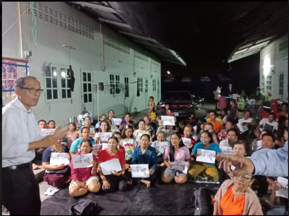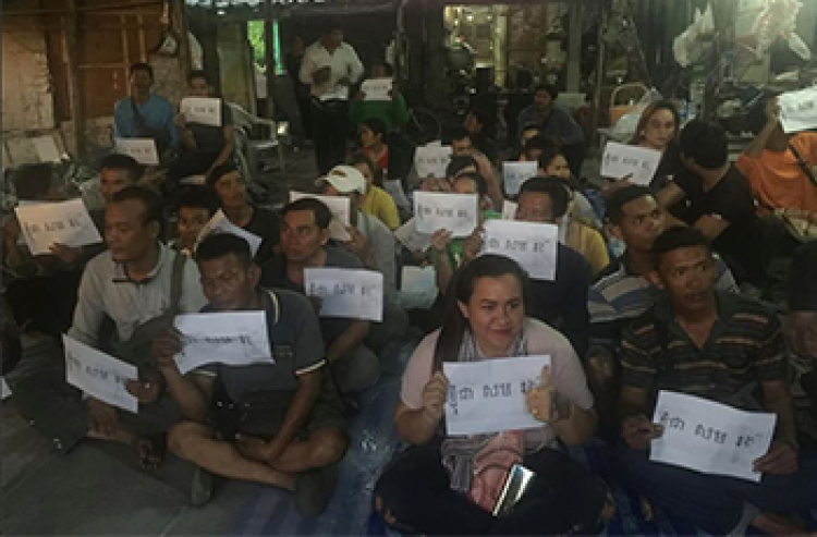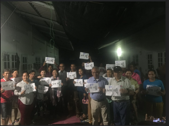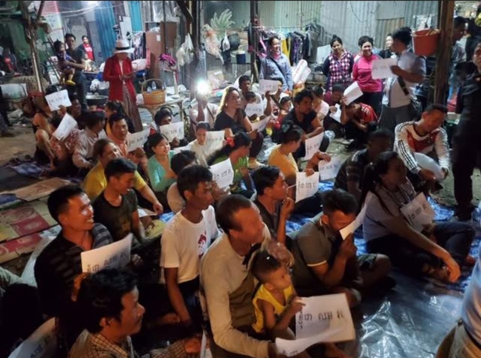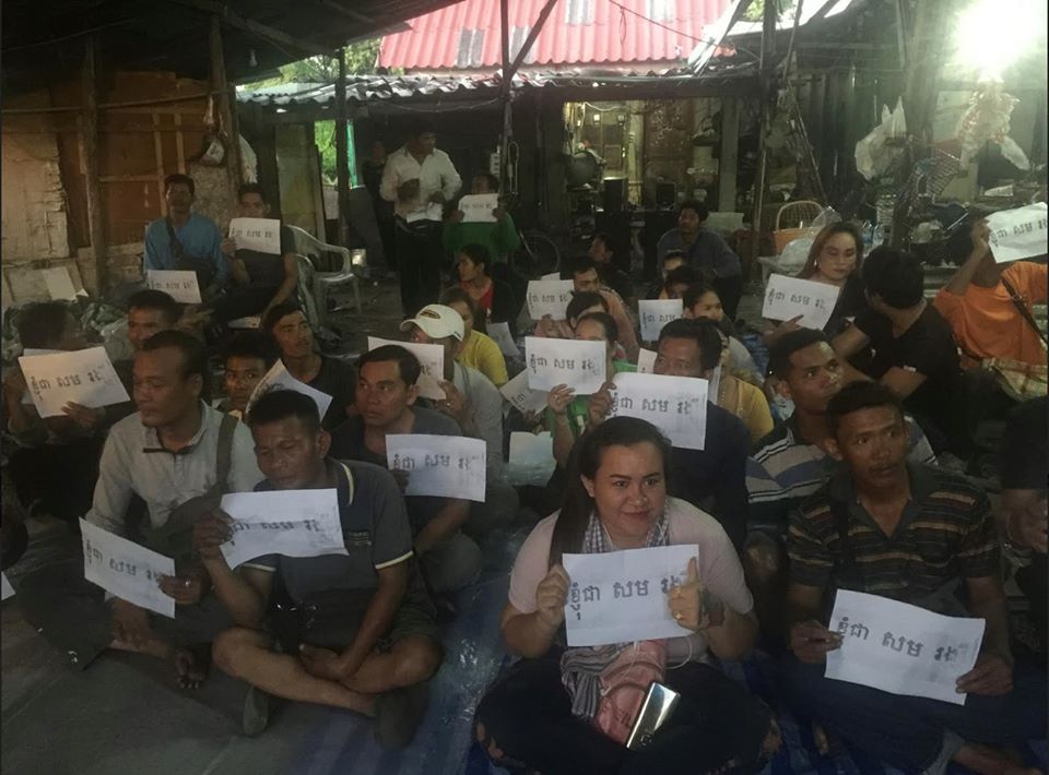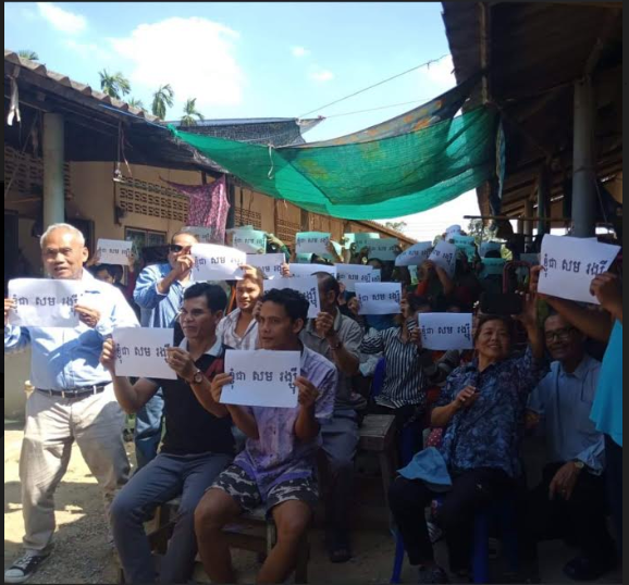 ពលករខ្មែរនៅប្រទេសថៃ និងគ្រួសារ លើកបដា ដែលមានសរសេរថា "ខ្ញុំជា សម រង្ស៊ី" / Cambodian migrant workers in Thailand and their families show their support for Sam Rainsy.