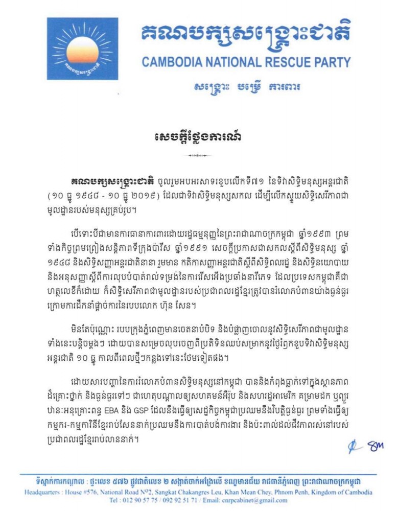 Fundamental rights and freedom of the Cambodian people are gravely violated by the authoritarian Phnom Penh regime of Hun Sen.