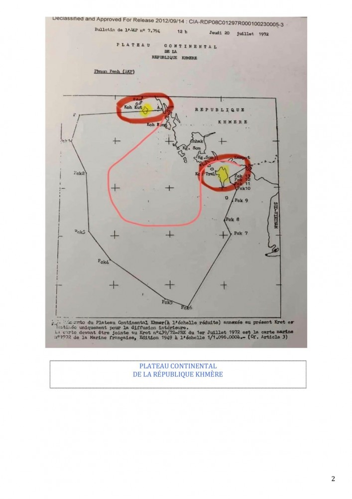 យើងមានសាក្សីបារាំង មានភស្ដុតាងក្នុងប្រវត្តិសាស្ត្រ និង មានច្បាប់សមុទ្ររបស់អង្គការសហប្រជាជាតិ ជាពិសេស សន្ធិសញ្ញាបារាំង-សៀមឆ្នាំ១៩០៧ ដោយមានផែនទីឧបសម្ព័ន្ធភ្ជាប់សន្ធិសញ្ញានេះ ដែលបញ្ជាក់ថា កោះគុតលើសពីពាក់កណ្ដាល និង ផែនសមុទ្រជាង ២៦០០០ គីឡូម៉ែត្រការ៉េ ដែលភាគីថៃ និង រដ្ឋាភិបាលភ្នំពេញ អះអាងថា តំបន់ត្រួតស៊ីគ្នានោះ គឺជាកម្មសិទ្ធិរបស់ប្រទេសកម្ពុជា។