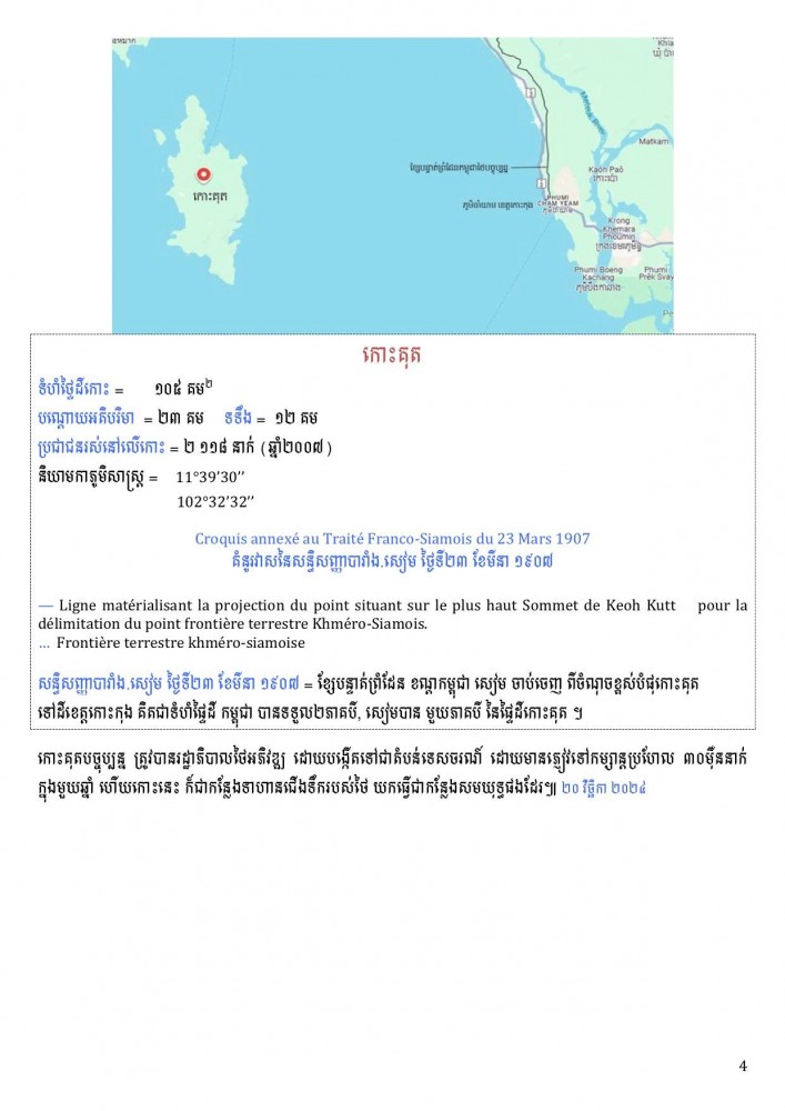 We possess compelling evidence, including historical documentation, French witnesses, and the United Nations Convention on the Law of the Sea. Notably, the 1907 Franco-Siamese Treaty, accompanied by an annexed map, clearly demonstrates that more than half of Koh Kood and the disputed maritime area, claimed by both Thailand and the Phnom Penh government, rightfully belong to Cambodia.