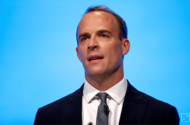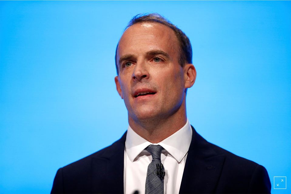 Foreign Secretary Dominic Raab speaks during the Conservative Party in Manchester, Britain, September 29, 2019. REUTERS/Henry Nicholls